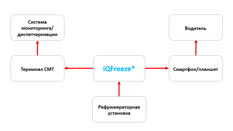 Специализированное бортовое устройство iQFreeze*Предназначено для получения данных непосредственно от рефрижераторной установки и передача их в систему мониторинга через бортовое устройство системы мониторинга;