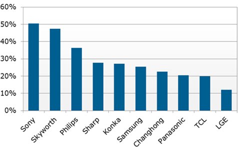 Проникновение брендов Smart TV, % (1 кв. 2012 г.)