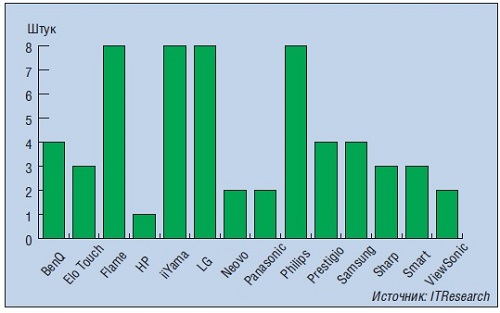 Следует также обратить внимание на значительные различия в средней стоимости продукции, выпускаемой различными вендорами. Большая часть производители предлагают рынку относительно бюджетную продукцию. Однако среди них встречаются исключения. К их числу относятся такие компании, как Sharp, SMART, Prestigio. Они предлагают рынку наиболее дорогие решения. Это продиктовано как ориентацией названных компанией на продуктовую линейку с большой диагональю, так и с фокусированием на решениях для групповой работы, обладающих высокой добавленной стоимостью.