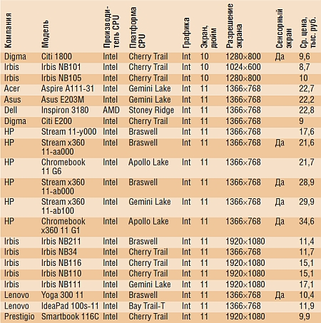 10-дюймовые устройства, царствовавшие на рынке во времена нетбуков, пропали вовсе – они сегодня есть только у локальных производителей, или встречаются у других, неупомянутых поставщиков, которые подобные мини-ноутбуки могут поставлять на цели образования.