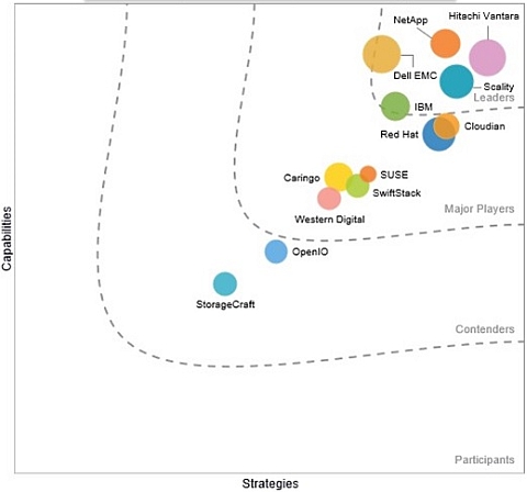К числу лидеров рынка IDC относит Hitachi Vantara с платформой Hitachi Content Platform (HCP) и NetApp с ее StorageGRID, а также малоизвестную в России компанию Scality.