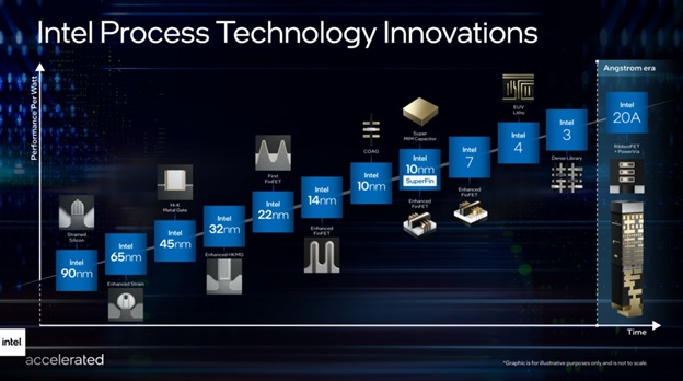 На онлайн-конференции было также обнародовано переименование технологических процессов, намеченных Intel к освоению, в рамках своего нового roadmap. Само упоминание физических мер длины уходит из названий техпроцессов компании. Справедливости ради стоит отметить, что ещё начиная примерно со времён «45 нм» обозначающее технологическую норму число перестало обозначать фактическое расстояние между соседними транзисторами на полупроводниковой подложке и превратилось по большей части в маркетинговый символ.