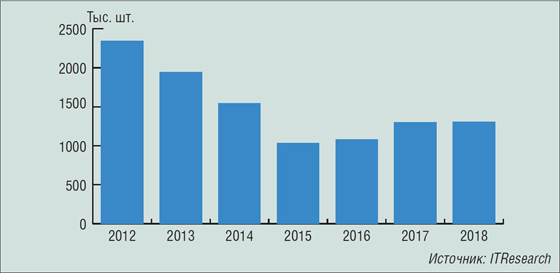 Вместе с тем ударное окончание 2018 г. несло в себе и угрозы, хотя бы из-за затоваривания складов. И потому прогноз ITResearch на 2109 г. уже был негативным – снижение примерно на 5% как в штуках, так и в деньгах.