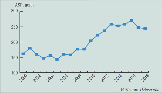 Рис. 2. Динамика средневзвешенной стоимости ИБП (ASP).