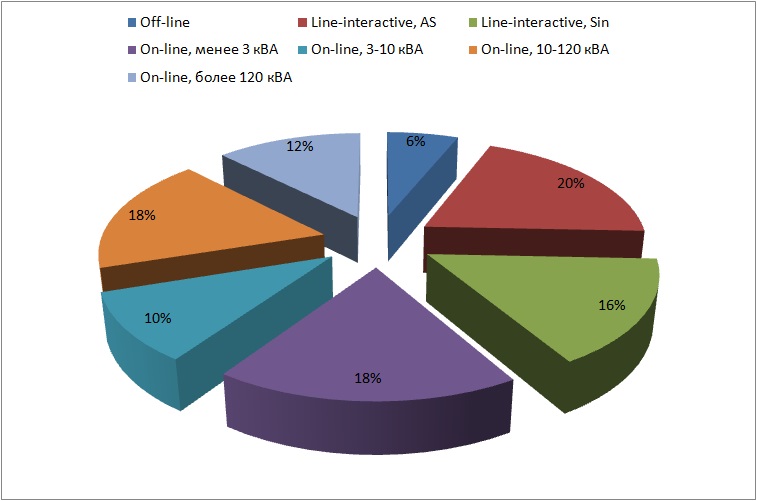 Структура продаж ИБП на российском рынке по классам