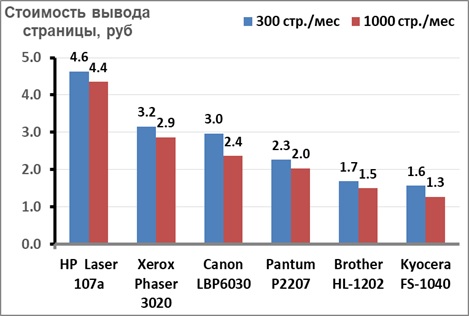 300 и 1000 страниц в месяц (при расчетах использованы средние розничные цены устройств и картриджей на середину февраля).