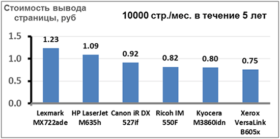 Рис. 1. Стоимость вывода страницы для моделей скоростных МФУ