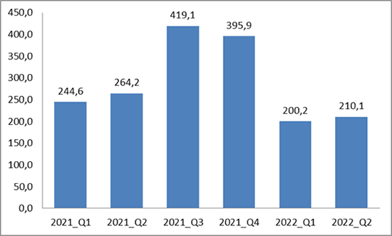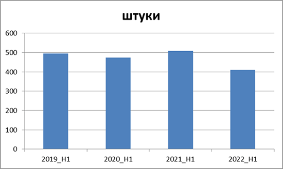 Вместе с тем год к году (по сравнению с 2 кварталом 2021 г.) рынок снизился на 20,5% в штуках и на 27% в деньгах. Но нужно учитывать, что 2 квартал 2021 г. был очень хорошим в деньгах (выше мы упоминали о поставках Huawei), и во многом именно высокая база сравнения привела к столь серьезному ухудшению динамики.