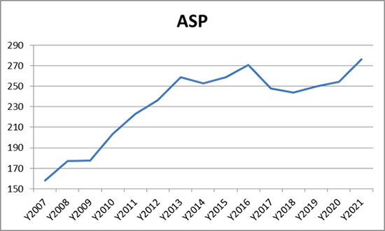 В целом следует отметить, что за последние 15 лет только однажды (в 2017 г.) динамика денежных показателей была заметно хуже натуральных (см. рис. 1 в). И вследствие этого средневзвешенная стоимость ИБП уверенно росла, почти удвоившись за этот период времени (см. рисунок 1 г.). Это было именно следствием перманентного увеличения доли инфраструктурных онлайн ИБП.