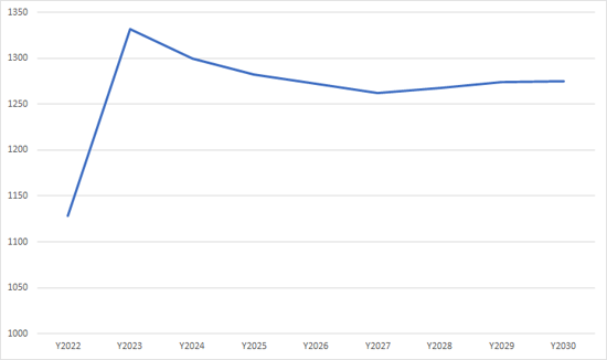 Таким образом, введя в уравнение поставки по предыдущим годам (временной ряд) и матмодель, можно провести расчеты и получить скользящий ряд: перспективу российского рынка ИБП до 2030 г. (см. рис. 6). Это объемы продаж, позволяющие сохранять текущую базу ИБП в неизменном состоянии. Как видно, наиболее вероятным сценарием видится общий рост рынка.