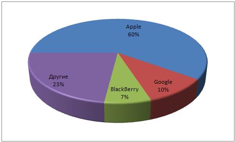Наибольшую долю на этом рынке безоговорочно занимает компания Apple.
