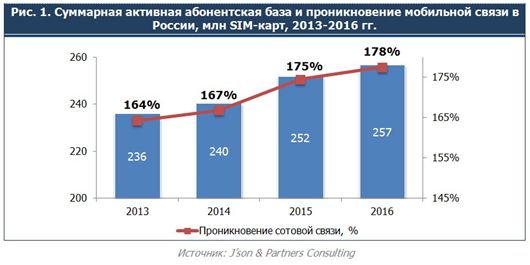 В связи с приближением рынка к стадии насыщения обостряется конкурентная борьба между операторами. В 2016 г. все операторы «большой тройки» продемонстрировали снижение выручки от мобильных услуг. Мобильные операторы начинают поиск новых источников доходов, напрямую не связанных с оказанием услуг связи.