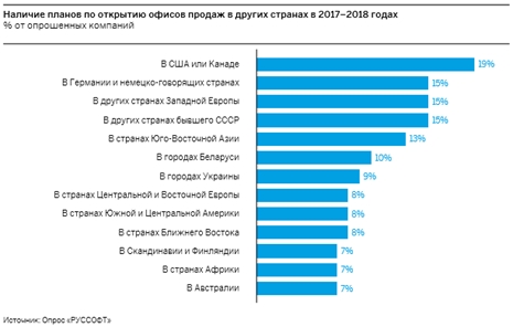 Среди стран, где планируется открыть офисы продаж, лидируют США и Канада (см. рисунок).