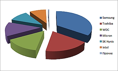 Диаграмма 1. Рыночная доля мировых производителей микросхем NAND во II кв. 2019 г. (суммарный объем рынка — 10,787 млрд долл. США)