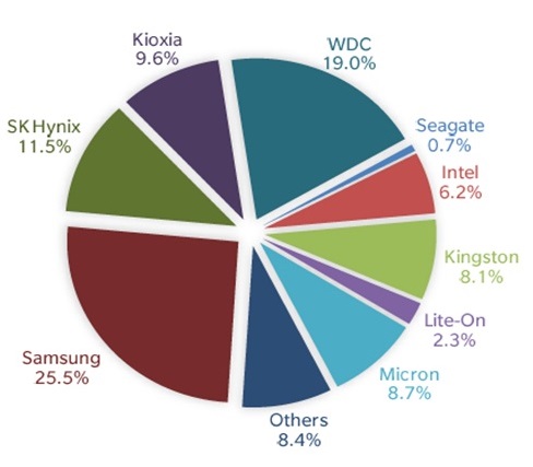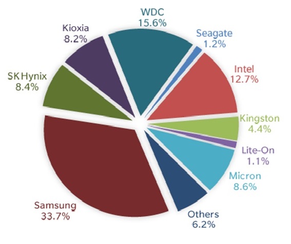 Рис. 2. Доли ведущих вендоров в мировых поставках SSD в I кв. 2020 г.,