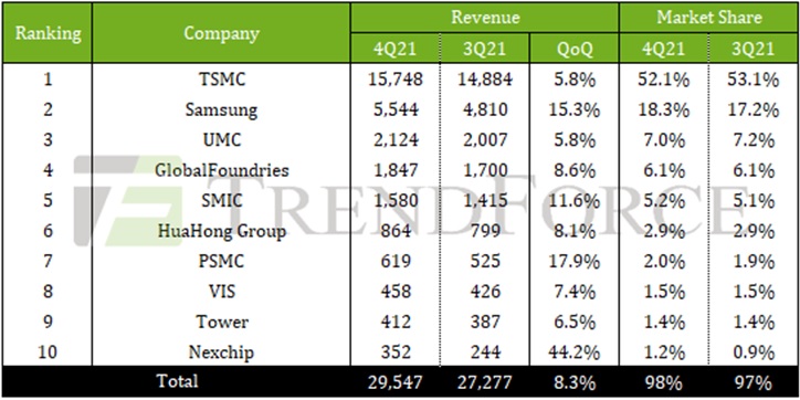 В TrendForce подсчитали, что за последние три месяца прошлого года первые 10 глобальных чипмейкеров выручили в сумме на 8,3% больше, чем кварталом ранее, — 29,55 млрд долл. США. Этот квартал стал в данном сегменте рынка десятым подряд в череде рекордных по выручке.
