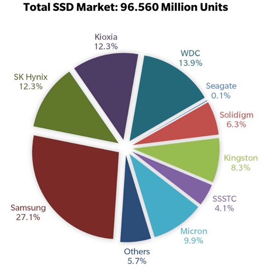Структура поставок SSD в мире за I кв. 2022 г.: в натуральном выражении