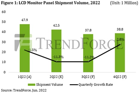 На III кв. 2022 г. TrendForce предсказывает продолжение спада поставок мониторных ЖК-панелей до 37,8 млн единиц (—11,2% квартал к кварталу). Однако в последний квартал года ожидается небольшой ( +2,8%) рост — до 38,8 млн единиц.