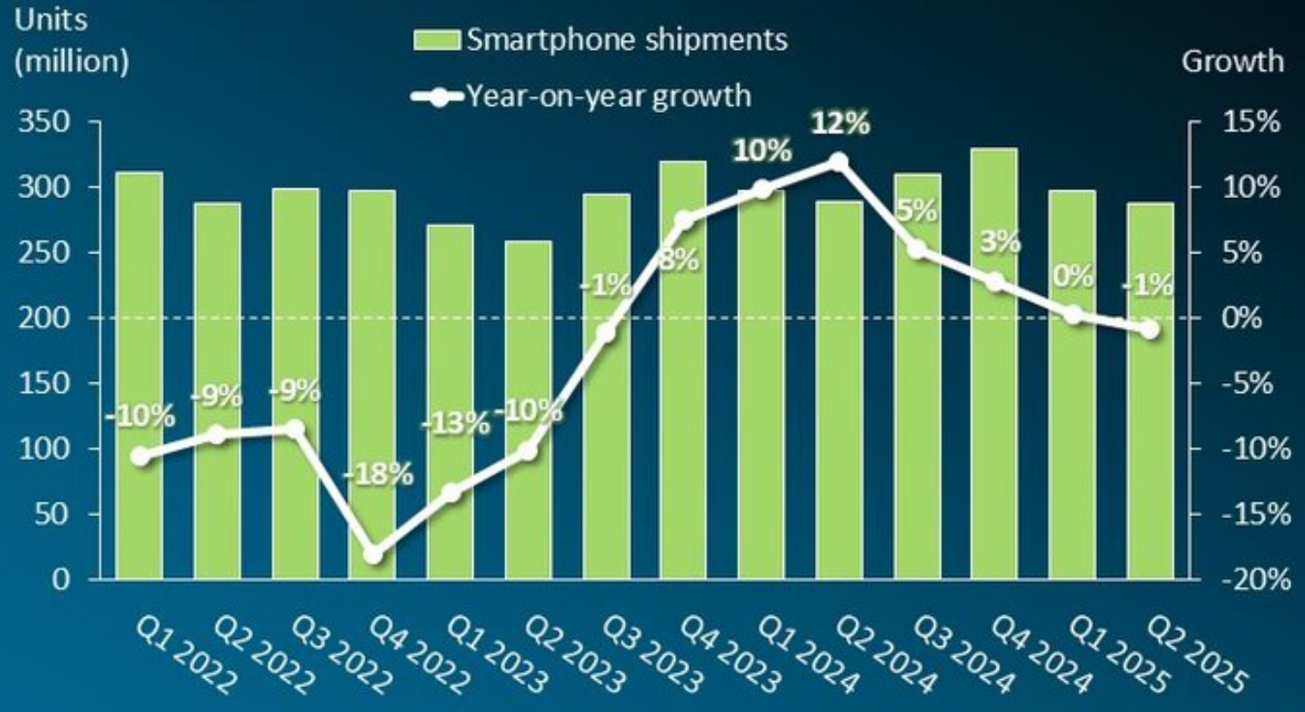 По итогам II кв. 2025 г., как подсчитали в Canalys, в мире было отгружено на 1% меньше смартфонов, чем за аналогичный период прошлого года. Сокращение ничтожное, по сути, почти что в пределах статистической погрешности, однако аналитиков насторожил тот факт, что это первый отрицательный показатель такого рода за последние семь кварталов (точнее, за шесть: в I кв. текущего года была зафиксирована нулевая динамика поставок). Поскольку речь идёт именно о поставках в канал продаж, а не о фактических реализациях смартфонов, в Canalys предполагают, что возврат к снижению отгрузок (кстати, тренд на него проявился ещё начиная с III кв. 2024-го) свидетельствует о нарастающем беспокойстве канальных партнёров в отношении перспектив продажи смартфонов; как ближайших, так и среднесрочных.